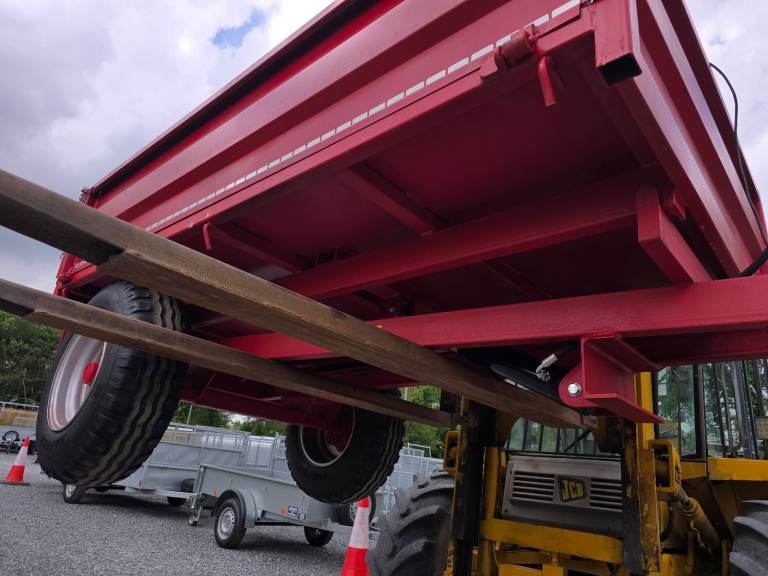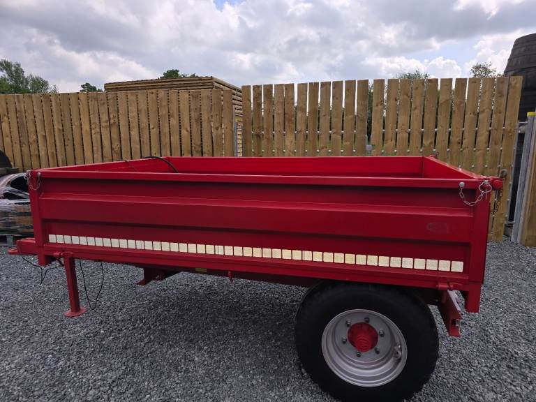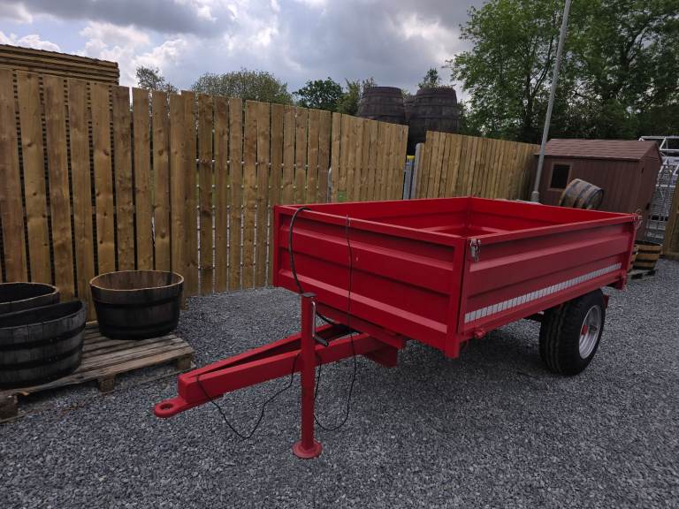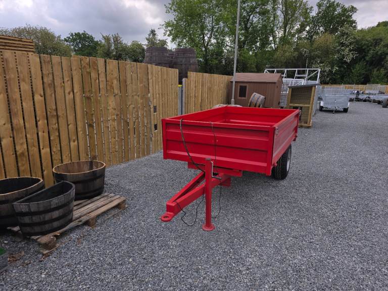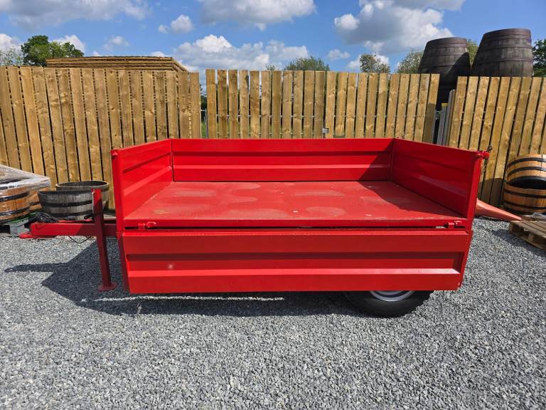 Just in, new 8x5ft tipping body dropside trailer, strong well made wee trailer perfect for a vintage tractor or wee Compact tractor for garden work. New lighting board fitted, sides fold down & removable.