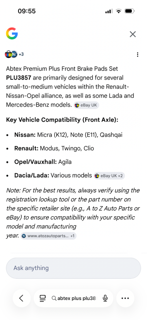 Posting for 3+ yearsAbtex front break pads and discs