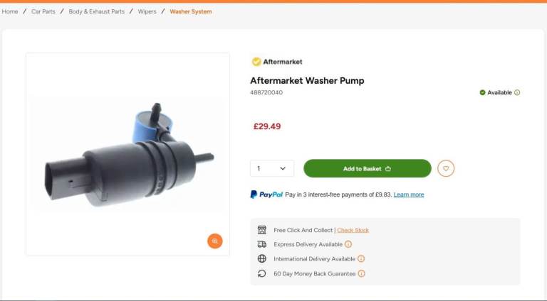I have for sale an Aftermarket Washer Pump Part # 488720040. This item is brand new in its original box. RRP: £29.49