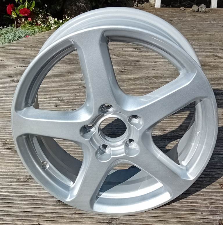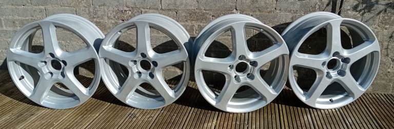 Genuine Honda 'Penta' 17" light alloy wheels. Fresh powder coated silver gloss, round with no buckles, flatspots,or cracks. Like new.