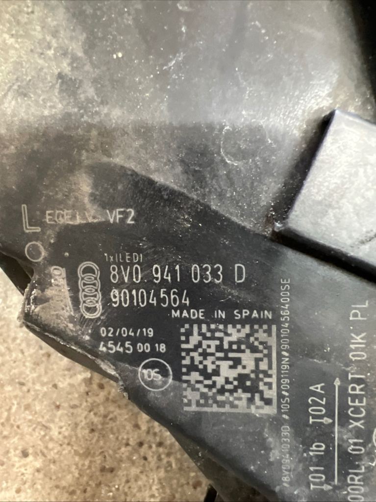 AUDI A3 S3 RS3 2016-2020 8V PASSENGER LEFT HEADLIGHT LED GENUINE 8V0941033D