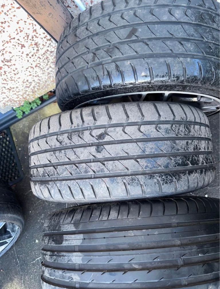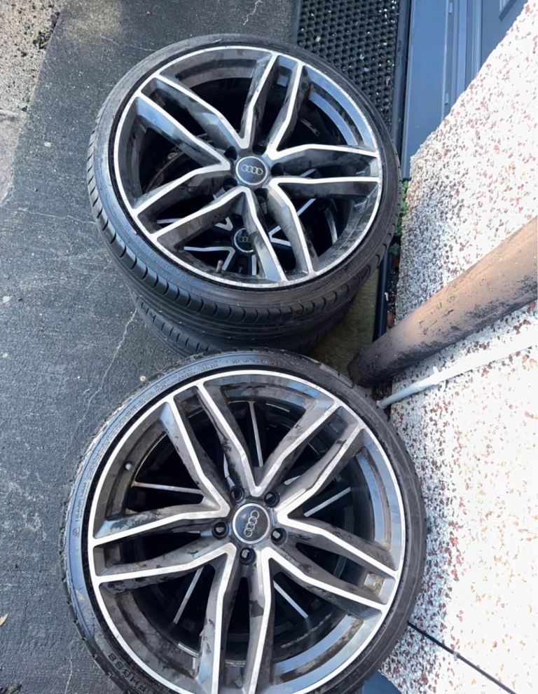 3x Audi A5 20” V-Spoke Diamond Cut Alloys Wheels with Low Profile Slim Tyres. No defects or welds. Plenty of tread left on the tyres.