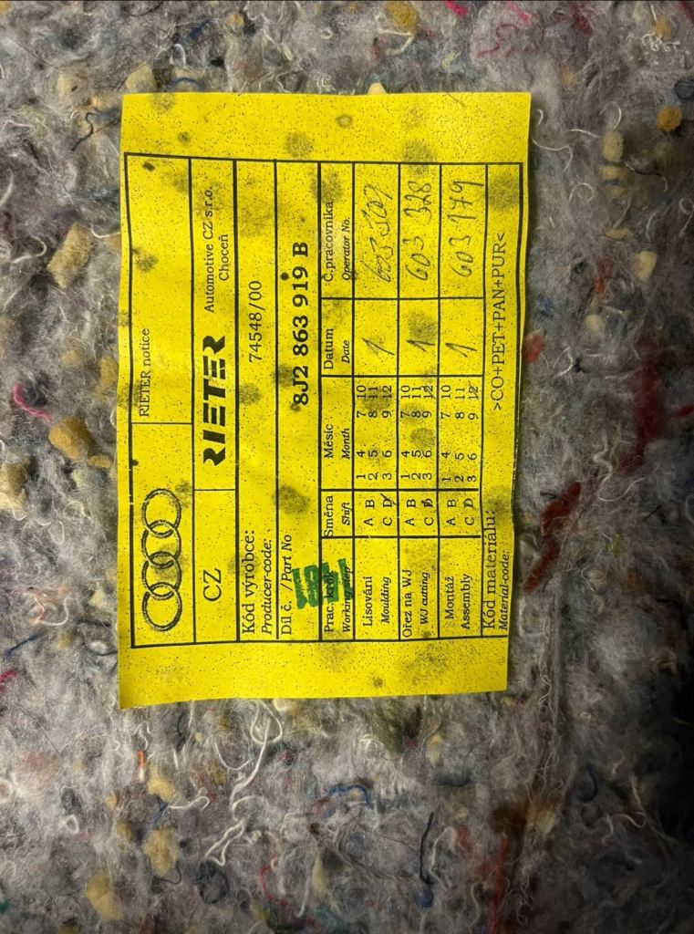 Authentic Audi TT MK2 Carpet & Underlay. Taken from. 56 plate (2006/2007).