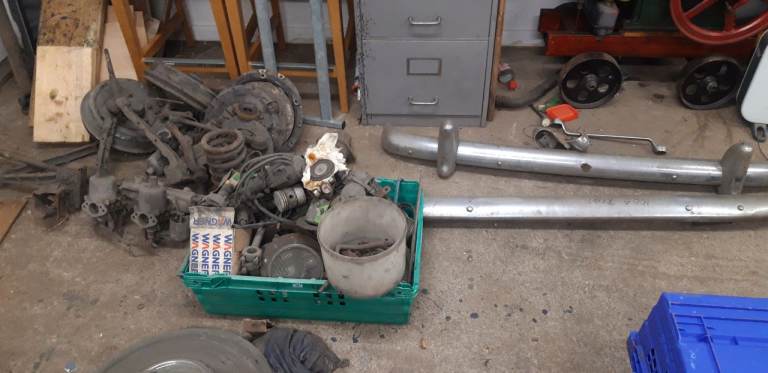 Autojumble lot to go Porsche 356 bonnet austin 3000 parts and so on some motorcycle parts from private collector