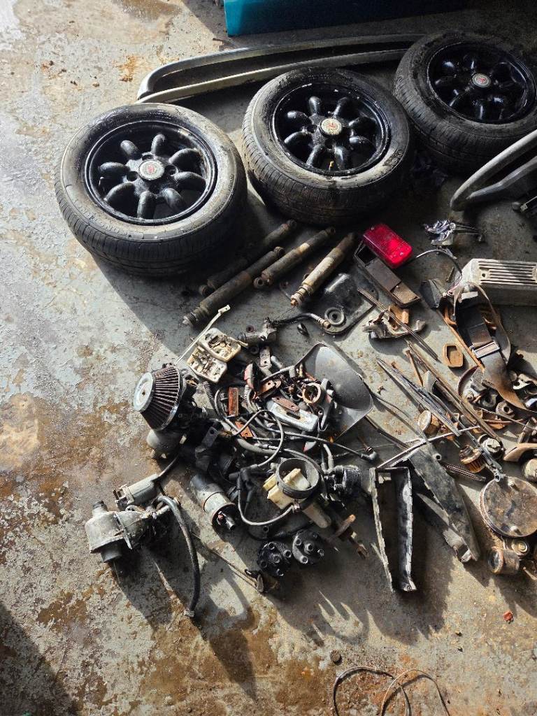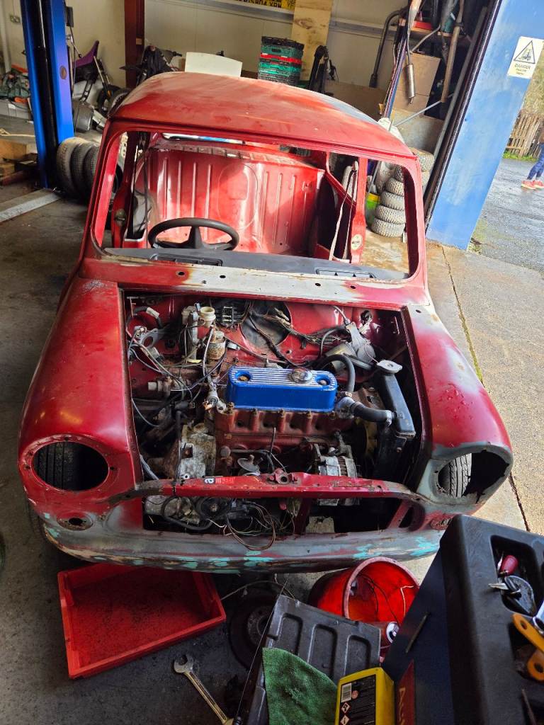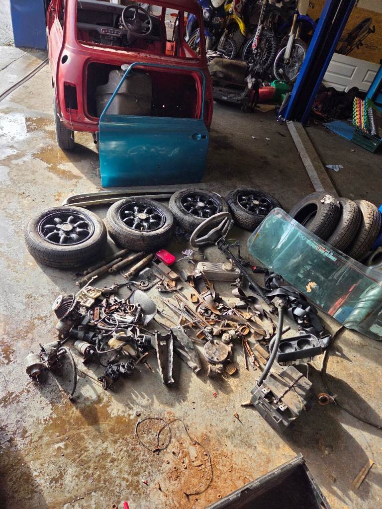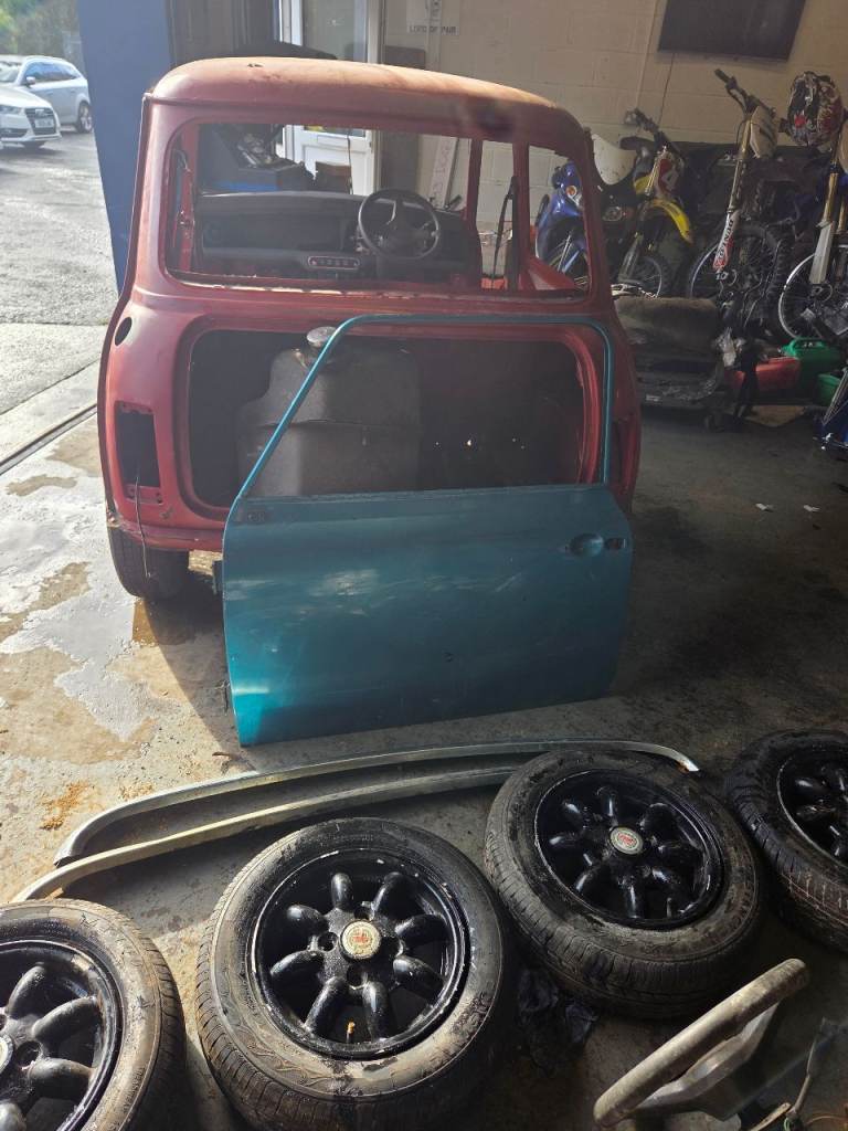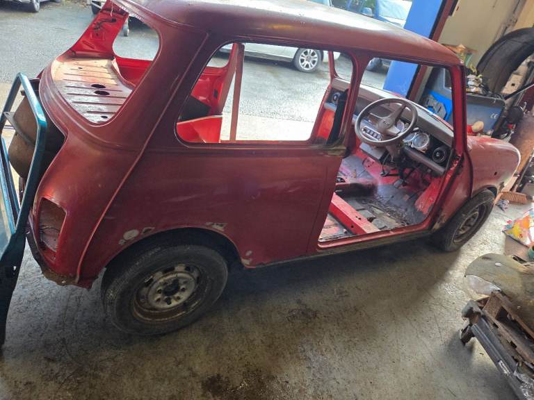 Lovely little austin mini Mayfair feeling sorry for itself love to keep it but downsizing what i have and going new shell route with my other mini the lovely red mini in the pictures is a 1988 auto on the v5 but has been manual converted loads of parts with it both subframes are likely no good very rusty/rotted but still rolls fine the shell is in okay condition front end needs work same as front floor pan but fairly solid great start for someone engines going to need a full rebuild isnt seized as,far as I know but oils mixed so creamy oil nearly a full set of green tinge windows 3 new but old tyres alloys and standard all mini parts in the picture is whats included have loads of extra pics of the mini if needed collection launceston