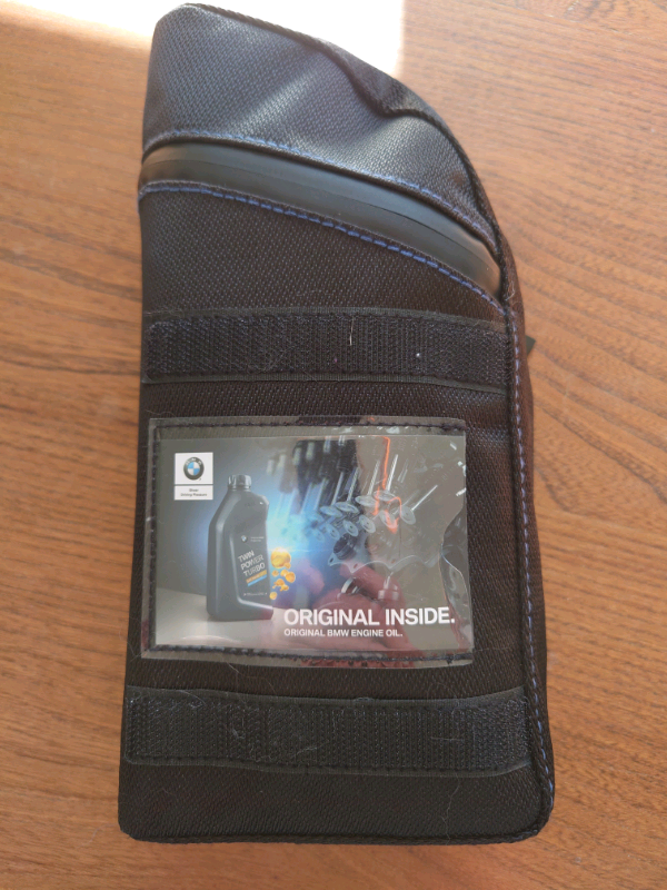 Genuine unused Oil filler boot kit from BMW. Travel pouch contains 1 litre of Twin Power Turbo SAE 0W-30 Longlife 04 oil and filling accessories.