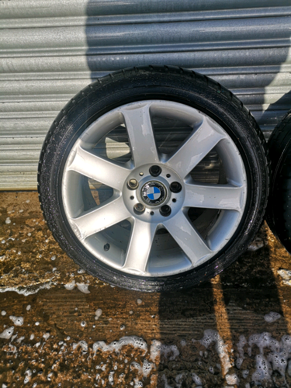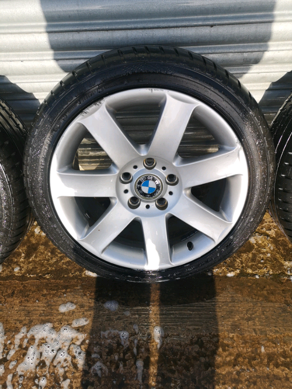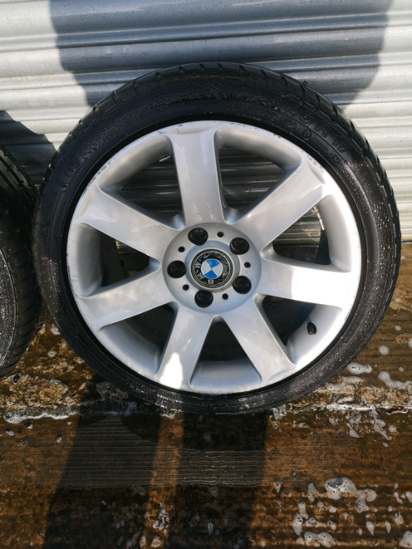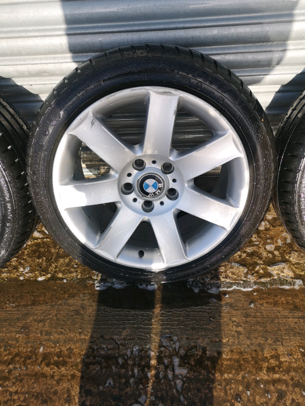 Full set of genuine BMW Alloys with continental run flat tyres all tyres have 5.5 to 6.5 of tread on them few cracks on tyres rims have a few light scuff marks but all straight ideal for a spare set or would do for the drifting men and ladies call if this add is still on the wheels are still for sale