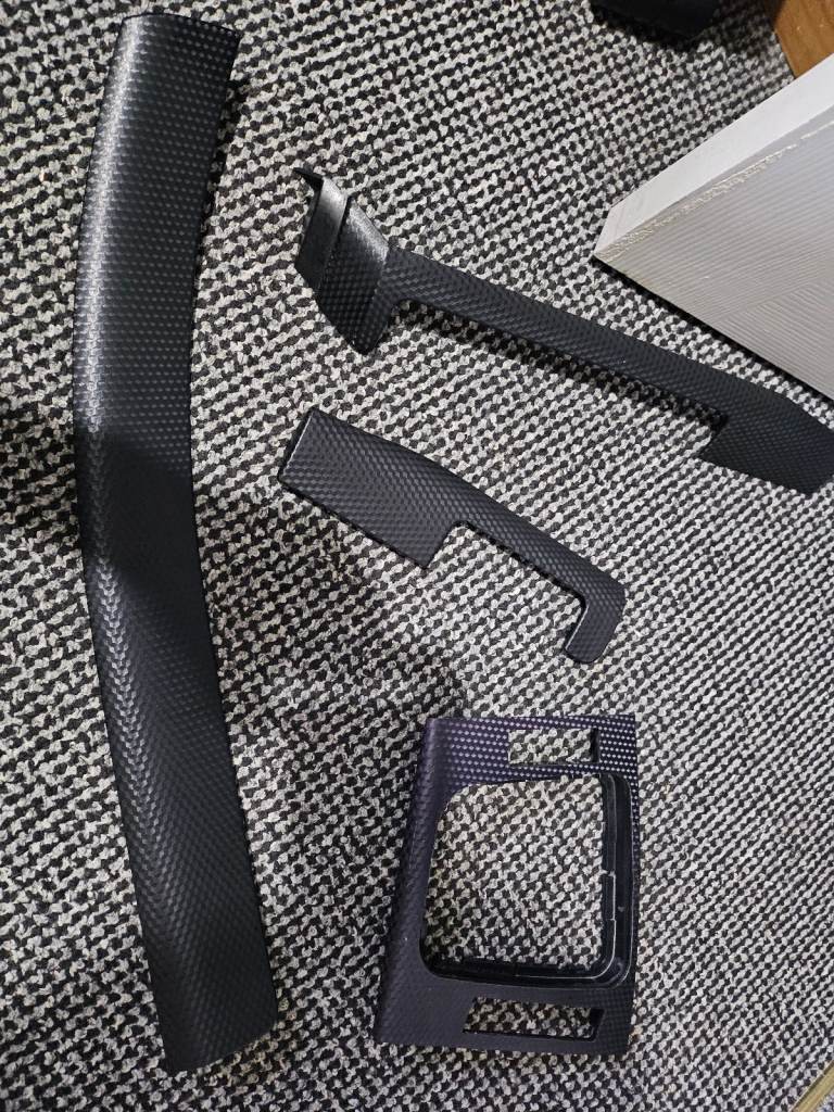 Carbon cube trim full set. comes with the rear arm rest trim and also comes with the Mirror switch and leather cushion.