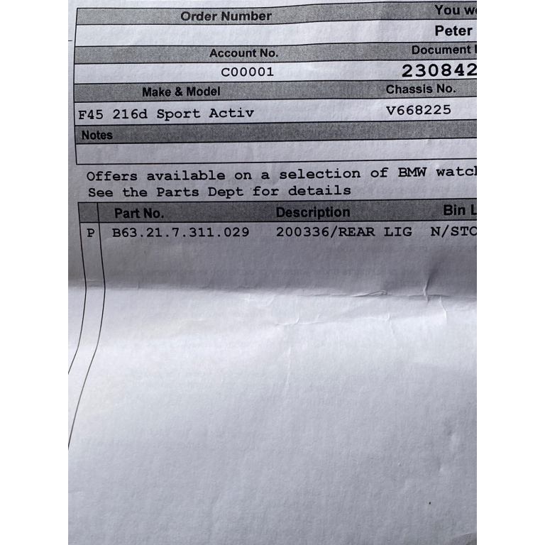 Posting for 10+ yearsBMW F45 Rear NS Light