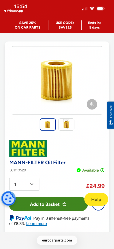 Posting for 10+ yearsBmw M4 2014-2020 oil filter mann filter