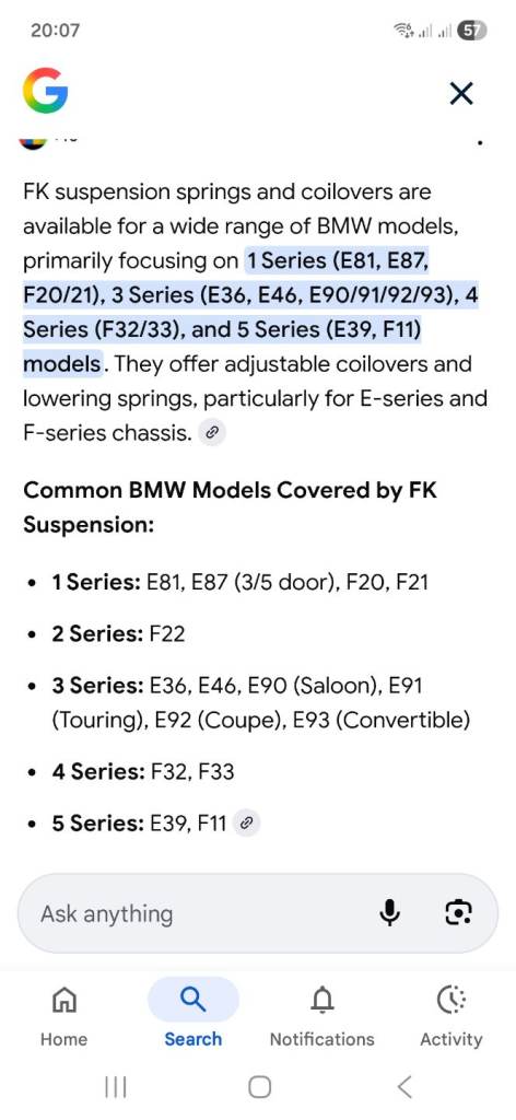 Selling for a friend, Brand new FK BMW suspension springs this price is for the pair of springs
