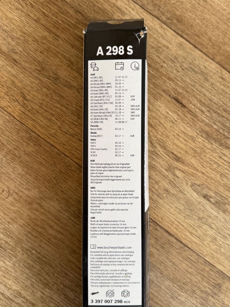 Posting for 7+ yearsBOSCH A298 S pair of wiper blades