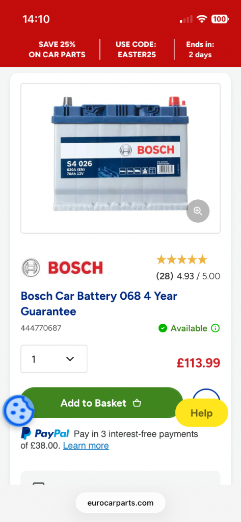 Bosch car battey for sale, bought as spare for my L200 but no longer needed, I bought it from Europarts around six months ago, in very good condition as per the pictures, looking for £55.00 for the battery and collection preferred.