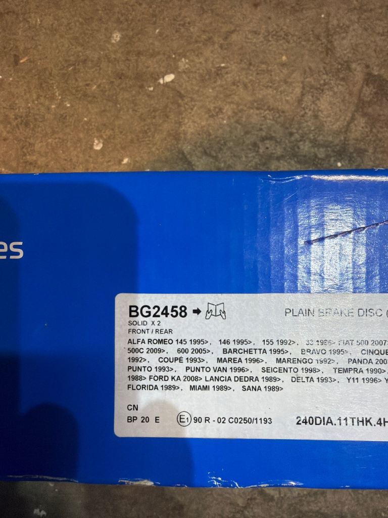 Brand new vented discs and front set of brake pads. Brake pads Drivetec, discs Delphi BG 2458. Check part numbers for suitability. For fiat 500 2013 onwards.