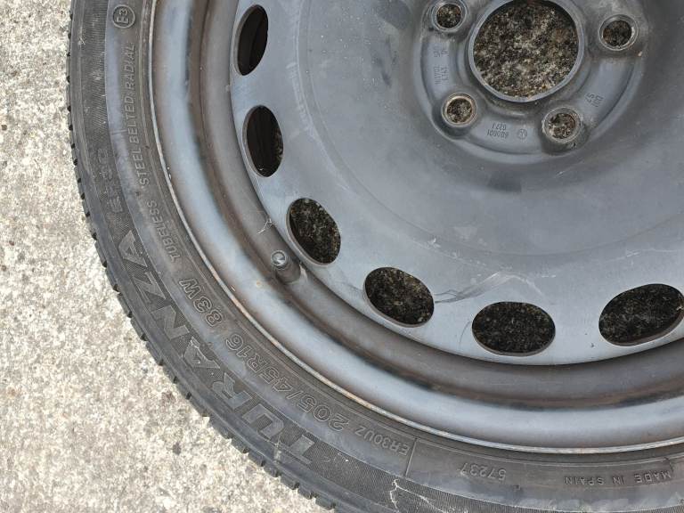 As new Bridgestone Turanza tyre on steel rim, condition excellent.collection only, no offers, less than half price of new tyre.
