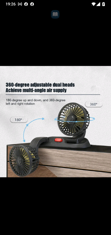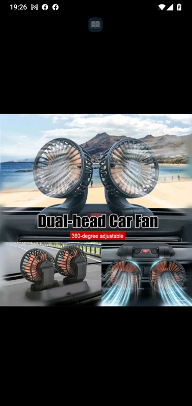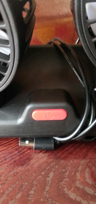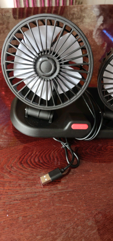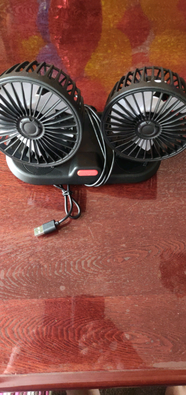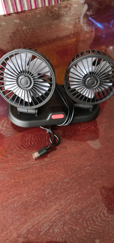 Car dual fan working with usb cable. It is new. Never used. It is adjustable fan. Look at the picture.