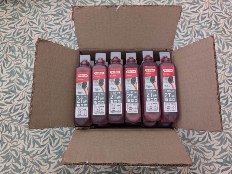 24 x Oregon 2-Stroke Engine Oil, Self-Mixing Partly Synthetic Mineral Oil, Clean Burning, Low Ash Lubricant, Protects Engine & Improves Performance, 2T, 100ml Bottle