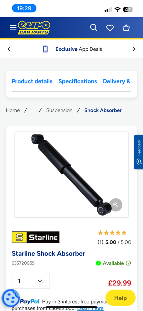 Shock absorber for Mercedes V-class. Passenger side at the rear. Good condition. Original Mercedes product.