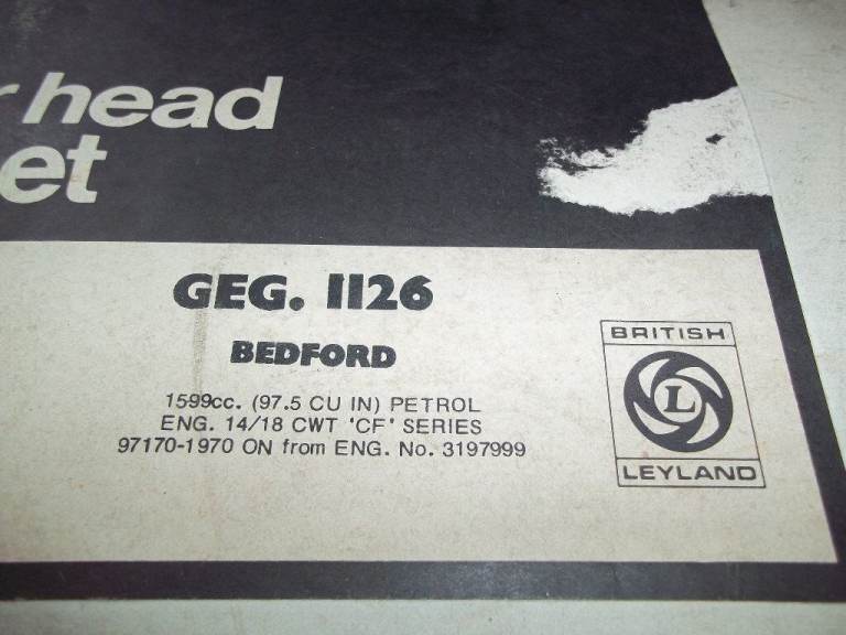 Unipart GEG 1126 Head Gasket Set suitable for CF Bedford 1599cc OHC Petrol engine ( eng no. 3197999-on), 14/16 CWT van/pickup.1970-on.