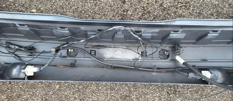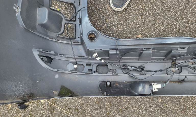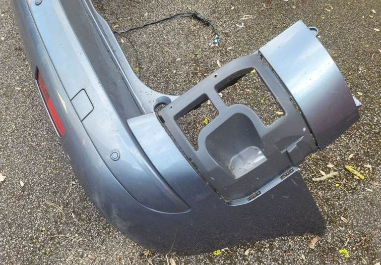 Complete plastic rear bumper moulding including rear sensors and fog lights. Only missing one of the corner plastic covers, see pics.