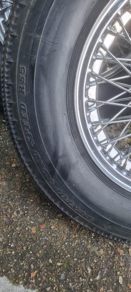 Tyres from wire wheels nearly new condition suit old jaguar ,austin healy ,aston martin . Cost new over£1000