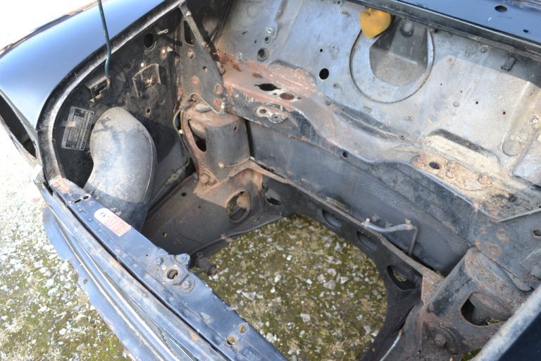 With the components removed, now is a great time to address the issues flagged up by the MOT, particularly the need to redress bodywork problems with the sills, rear subframe mounting points and rear subframe. However, the front wings, scuttle and front panel appear to be original to the car and are in decent shape.