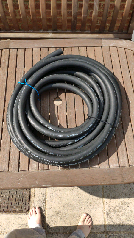 Brand new Codan car heater hose with 25mm internal diameter and approx 34mm outer diameter. Length of hose is 13.5m long. I will cut to required length if necessary and sell at £5 per metre otherwise the complete roll (13.5m) is £35.