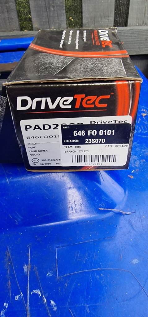 Posting for 4+ yearsDrivetec brake pads part number 2008, ford, landrover, volvo