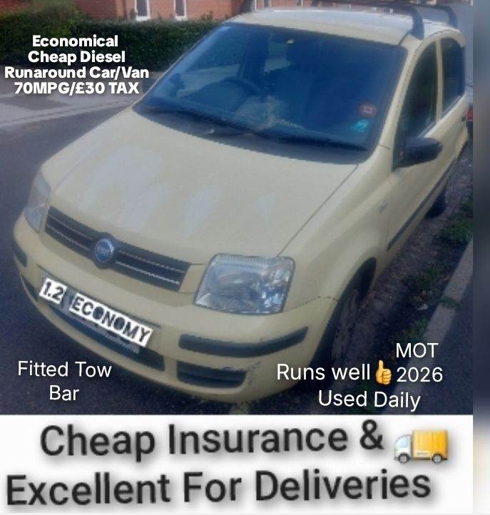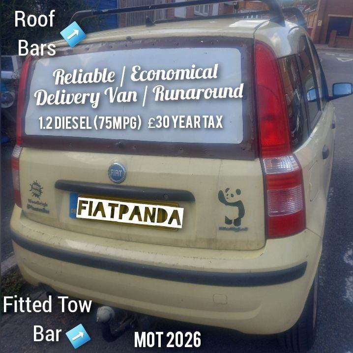 Used daily. Parts or to drive (1 of 2 available). Fiat Panda delivery car / van conversion. Drives superb and possibly the most economical vehicle to buy/run. Achieving 70MPG from its tiny 1.2 ltr diesel engine! Great versatility with fitted roof bars and a rear tow bar (pulls a trailer with ease!) AND carries longer items (ladders etc). MOT'd 125k mls. 07 plate. £30 yr Tax!