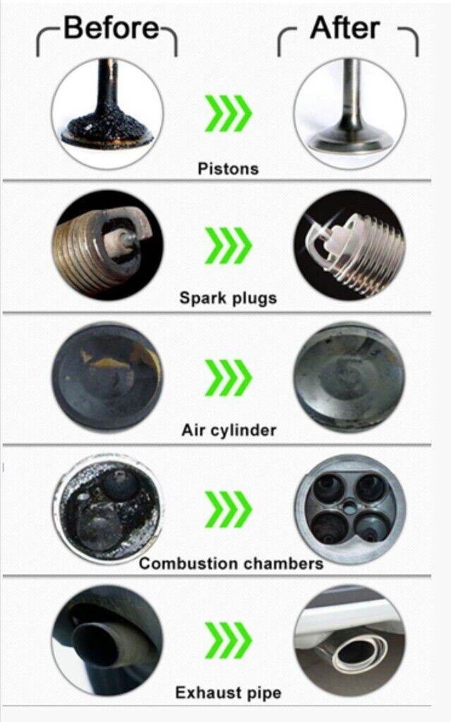 The hydrogen´s higher burn temperature and explosive force is such that it cleans the soot that collects in the engine and with a cleaner engine you get better mileage, quieter engine, better fuel economy, better response, and to recover lost BHP over the years.