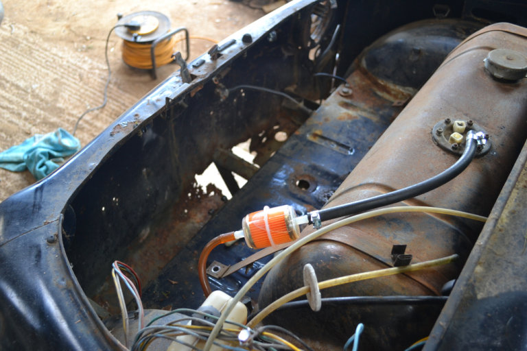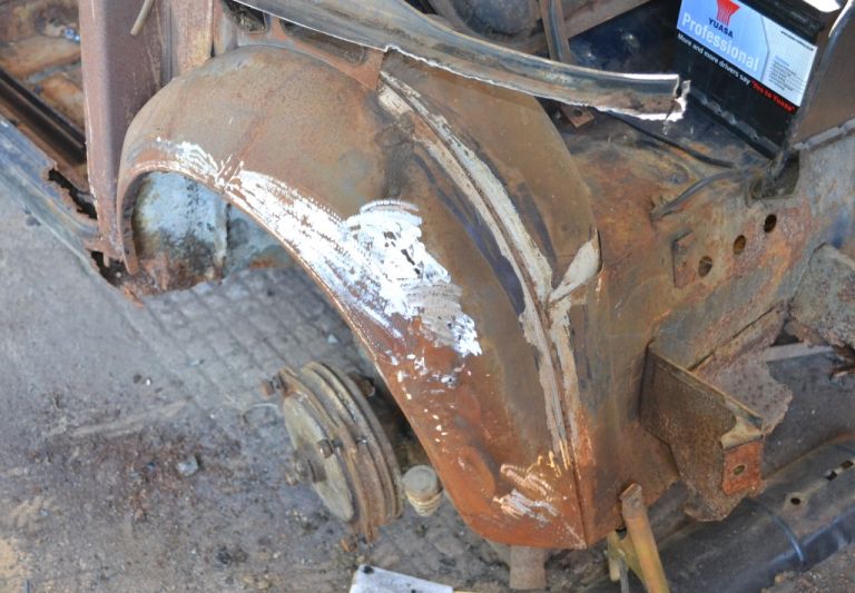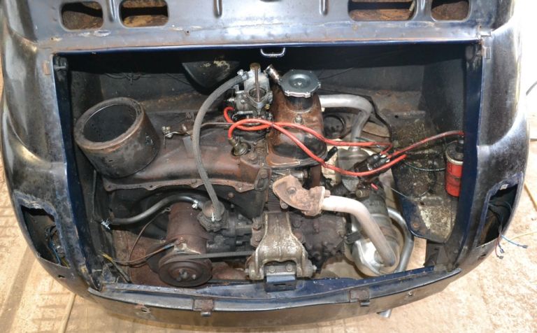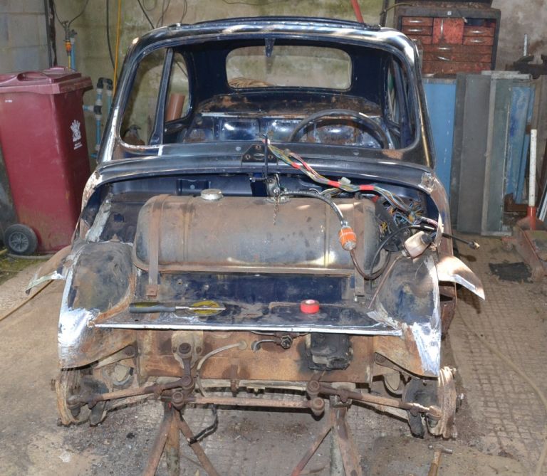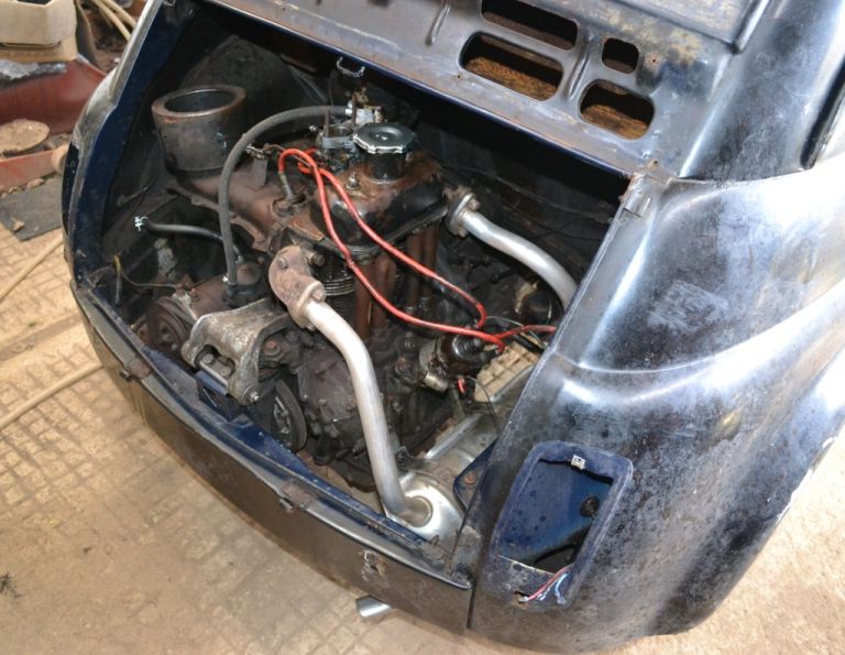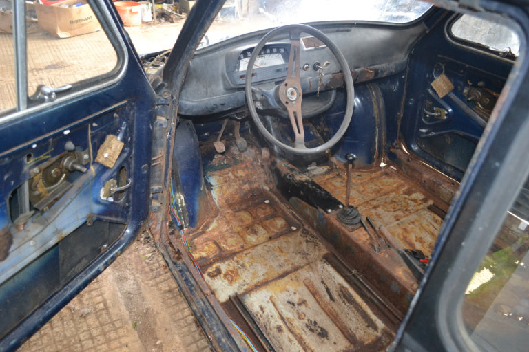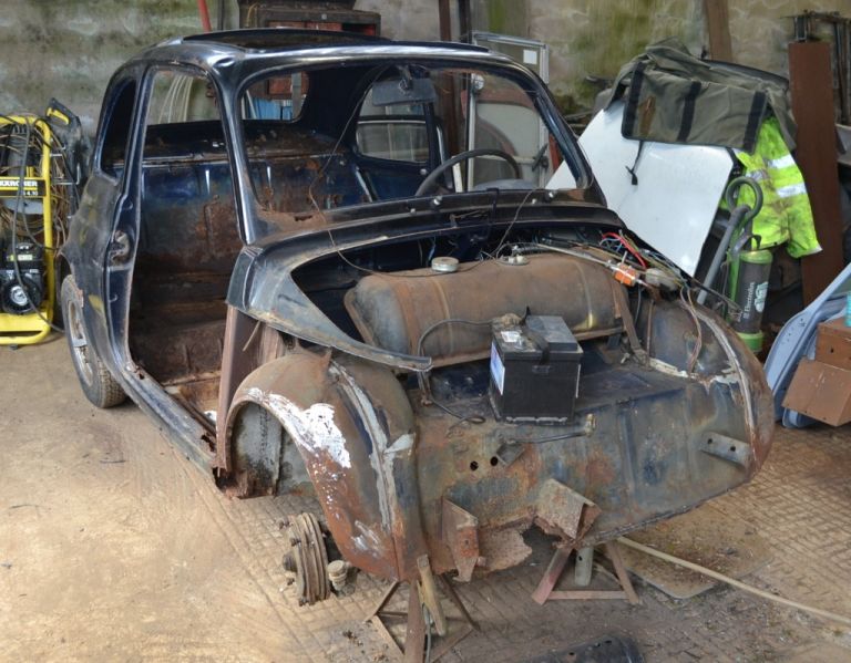 Purchased from the south of England, complete as shown in the early images. Initial enthusiasm saw this running, using the starter positioned between the front seats. New exhaust, a couple of new tyres and some new panels were purchased and are included with the car. Some front panels were removed as shown in later images - all panels for these cars are readily available and at very reasonable cost - cheaper than Classic Mini panels!