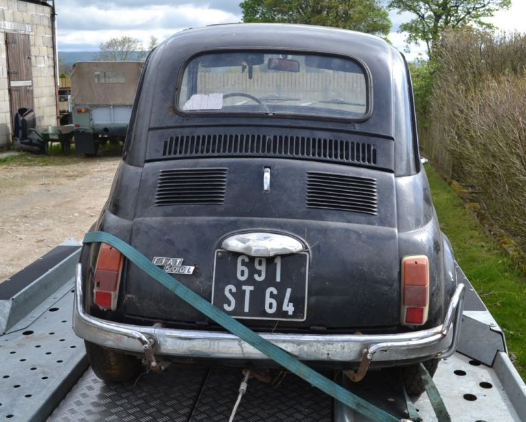 It was on French/Italian plates when purchased and although 'paperwork' was promised by the previous owner, this never materialised. Some email exchanges took place with the Italian Fiat500 Club with a little progress made on identifying date of production - confirmed as February 1969. The car has the VIN stamped on the bulkhead behind the fuel tank and on a VIN plate included. It has never been registered in the UK and is therefore offered without paperwork for spares, repairs or restoration.