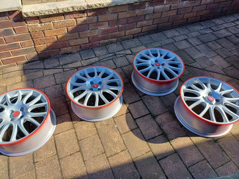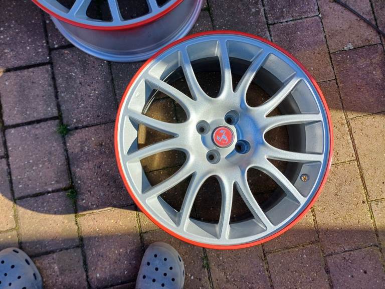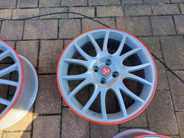 These wheels are in brand new condition and cost 800 £ each . Genuine fiat abarth 50th anniversary rims . Same as the ferrari tribute model rins . Open to close offers. Buyer collects see photos