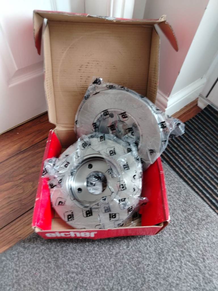 Theses discs are brand new. The pads are slightly worn I think. These came as spares with my sons 1.4 diesel Fiesta 10 plate.. The car as been sold and these were left in our garage, so no use to us.