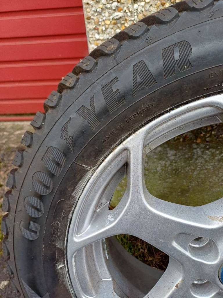 Ford 16inch alloy,mint condition. Fitted with 215/55/16 snow/ winter good year tyre with about 8mm of tread on it.