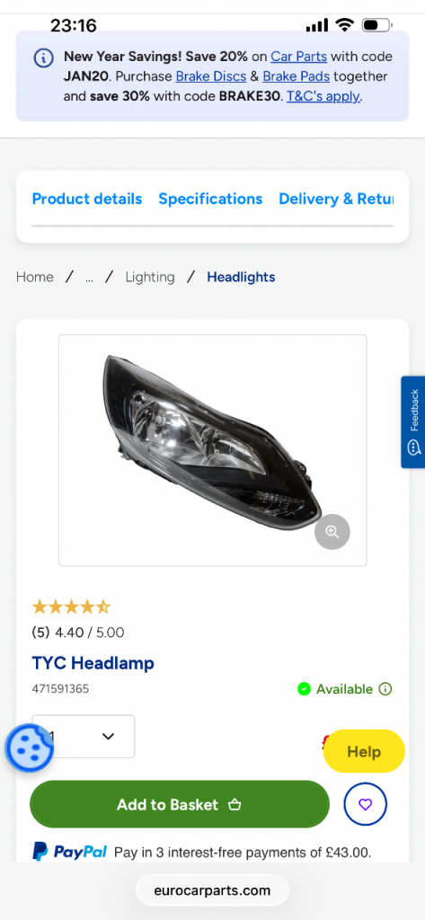 This is a brand new headlight still in box never been fitted for a Ford focus and fits offside