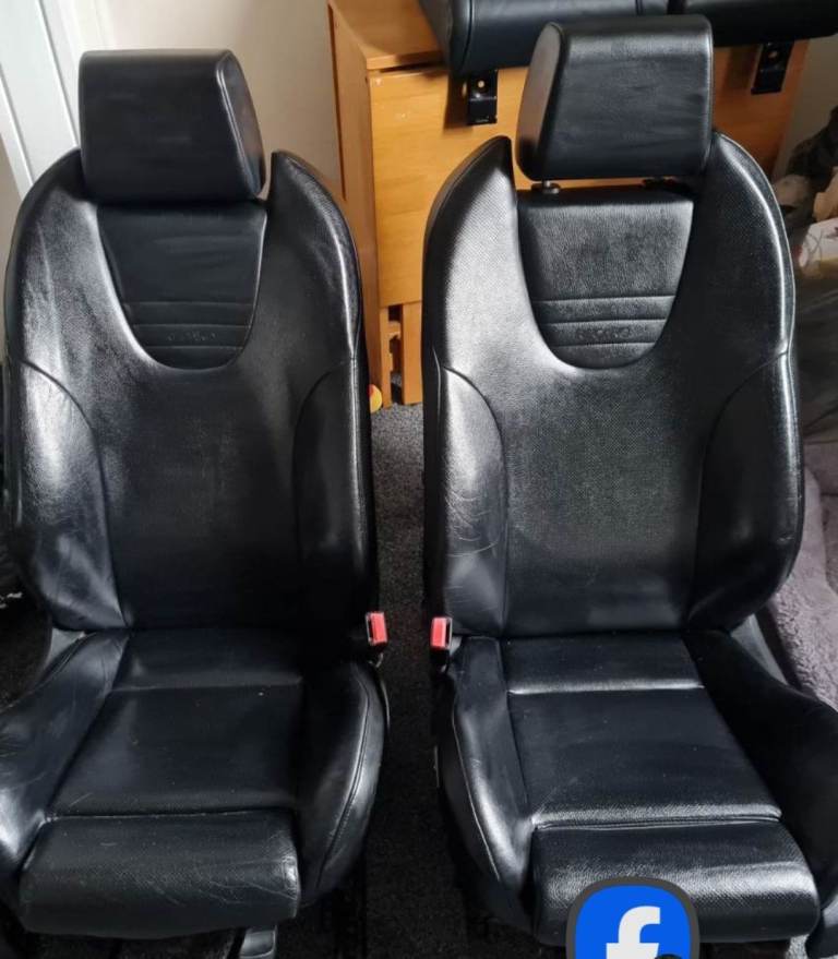 In excellent condition recaro black leather sports seats and seat belts x5, front seats are heated and heated seats switches can be included, front seats fit in various fords.