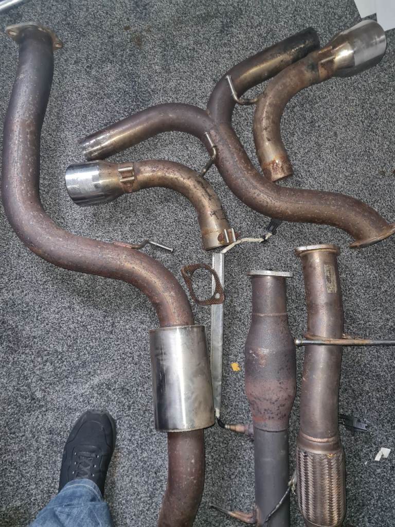 Full sports exhaust system- airtec motorsport down pipe, catalytic converter, middle section, cobra rear section leading to double exits, good growl to it.