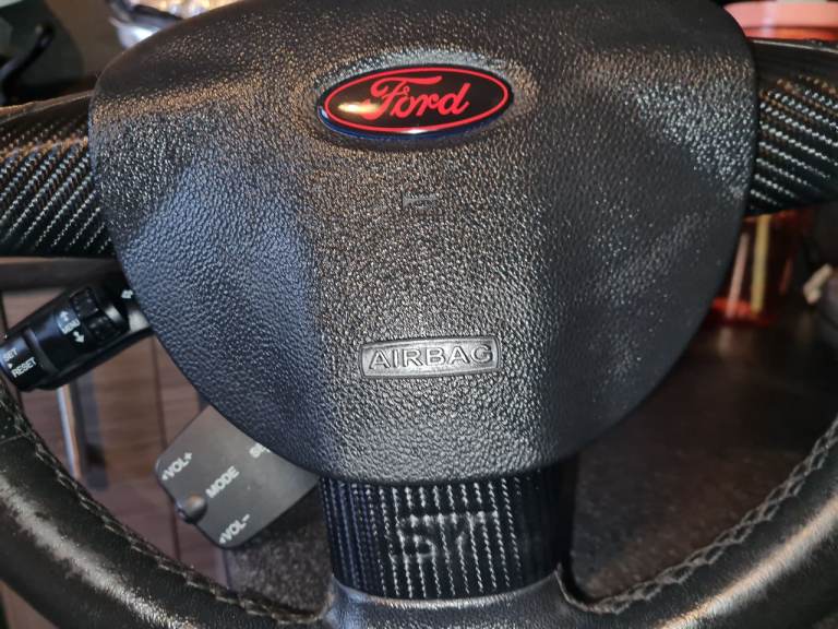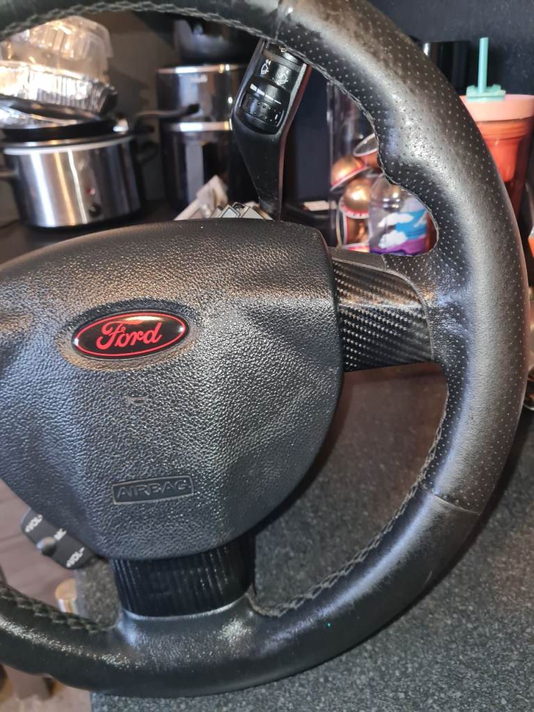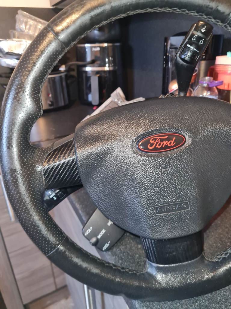 St leather sports steering wheel with airbag, red Ford badge, st emblem is under the carbon sticker which can be removed if preferred. £50 for it, can be easily changed over from original steering wheel if wanted.