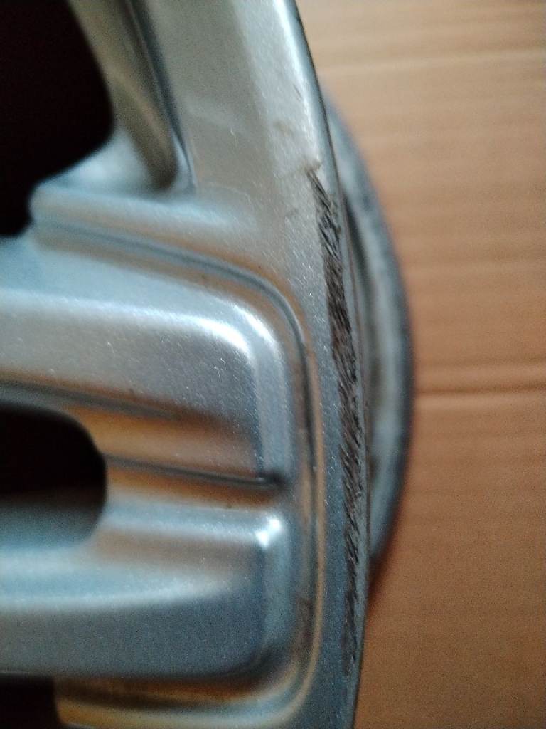 Silver colour 15" alloy wheel for Ford Ka+ or Fiesta. 5 spokes 4 bolt holes. Some light kerbing (see second photo). No tyre included.