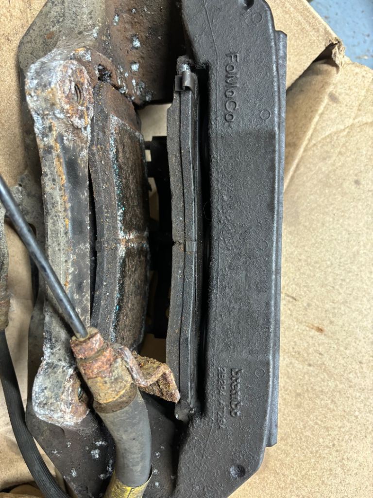 Here I have a drivers side brembo brake caliper, removed from a 2018 5 litre model, comes with pads and brake hose as in pics
