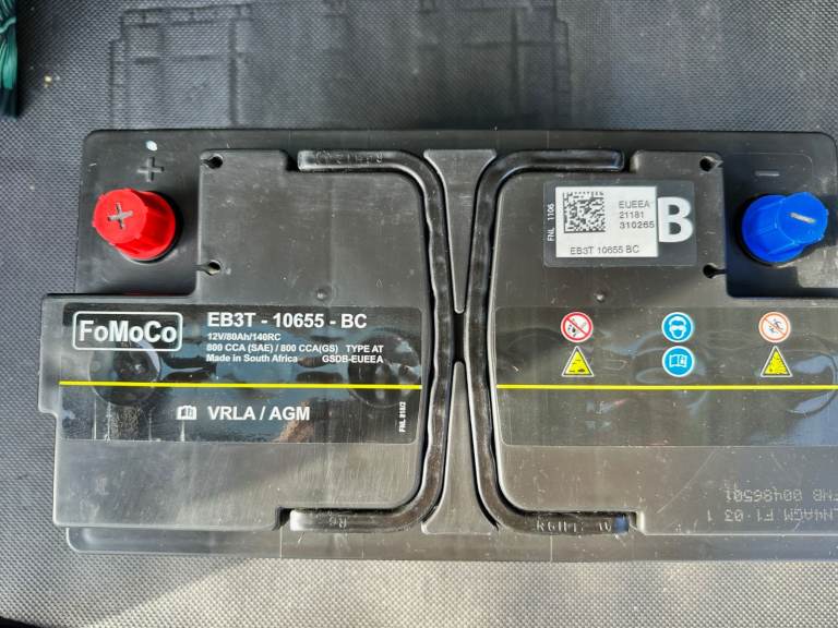 I removed and replaced this battery in error. I had various ABS, Hill Assist, Traction control etc messages appear and a Google search indicated it may be a battery, so I replaced it. The warning continued and so I paid for a diagnostic which indicated a front ABS sensor. This has cured the problem. This battery was working fine and is the original one factory fitted in 2021. It is out of a Ranger Wildtrack Auto 2L AdBlue. In short, I replaced the battery, without needing to. I am happy if you wish to bring some tools and fit it to make sure you are happy with it.