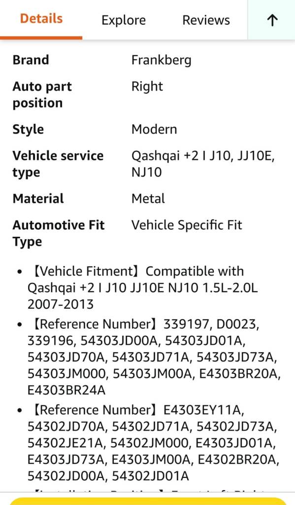 Posting for 11+ yearsFrankberg 2x Shock Absorber Front Left Right Compatible with Qashqai +2 I J10 JJ10E NJ10 2007-2013