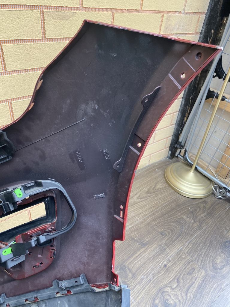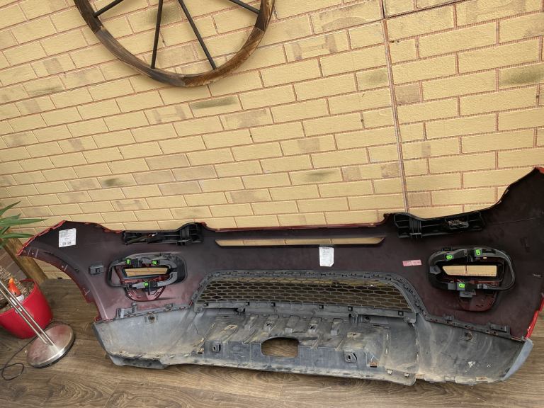In good used condition has some small stone chips /scratches nothing that overlay bad it will do as intended the color is Firenze red it also comes with lower grille and front apron headlight washers and fog light surrounds and grilles left and right behind the fog lights both small and big no fog lights or skid tray but over all its in good used condition any questions please contact me