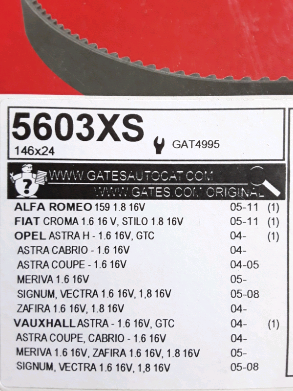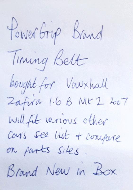 Timing belt new in box bought for Vauxhall Zafira 1.6 B Mk2 2007 but fits other make & model cars just check your reg in spare parts websites for compatibility . Am also selling a Water Pump still boxed £17 (cost £35) just let me know if your interested