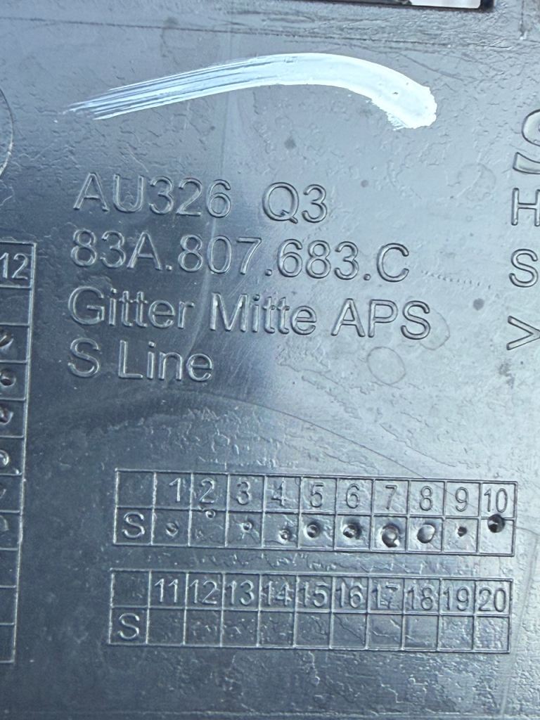 GENUINE AUDI Q3 2019-2024 S LINE FRONT BUMPER LOWER CENTRE GRILL P/N 83A807683C . CONDITION ITS USED EXACTLY AS SHOWN ON THE PHOTOS