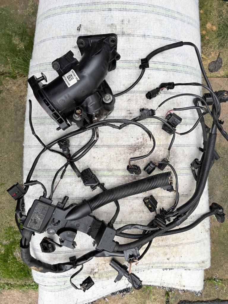 selling a complete engine wiring harness and the accompanying intake manifold elbow pipe, removed from a compatible BMW model. These parts are essential for the proper function of your vehicle.