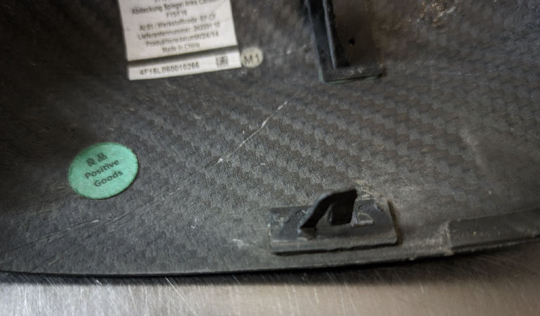 Real carbon fibre so too good to waste, does have scratches and one tab partly broken (see pic), another tab broken off completely (this seems to be more of a guide than a fixing), as I said too good to chuck away.