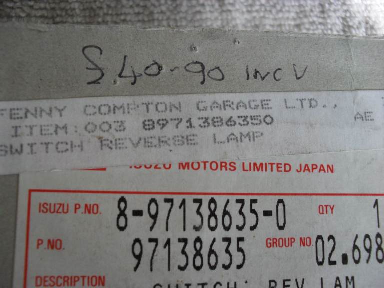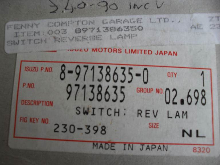 Genuine Isuzu Reverse Lamp Switch - For Trooper/Vauxhall