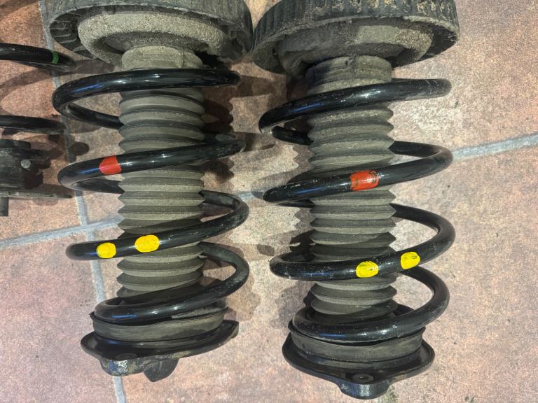 These have the red and yellow spots on the front springs around the shock this indicates correct weight distribution for your vehicle